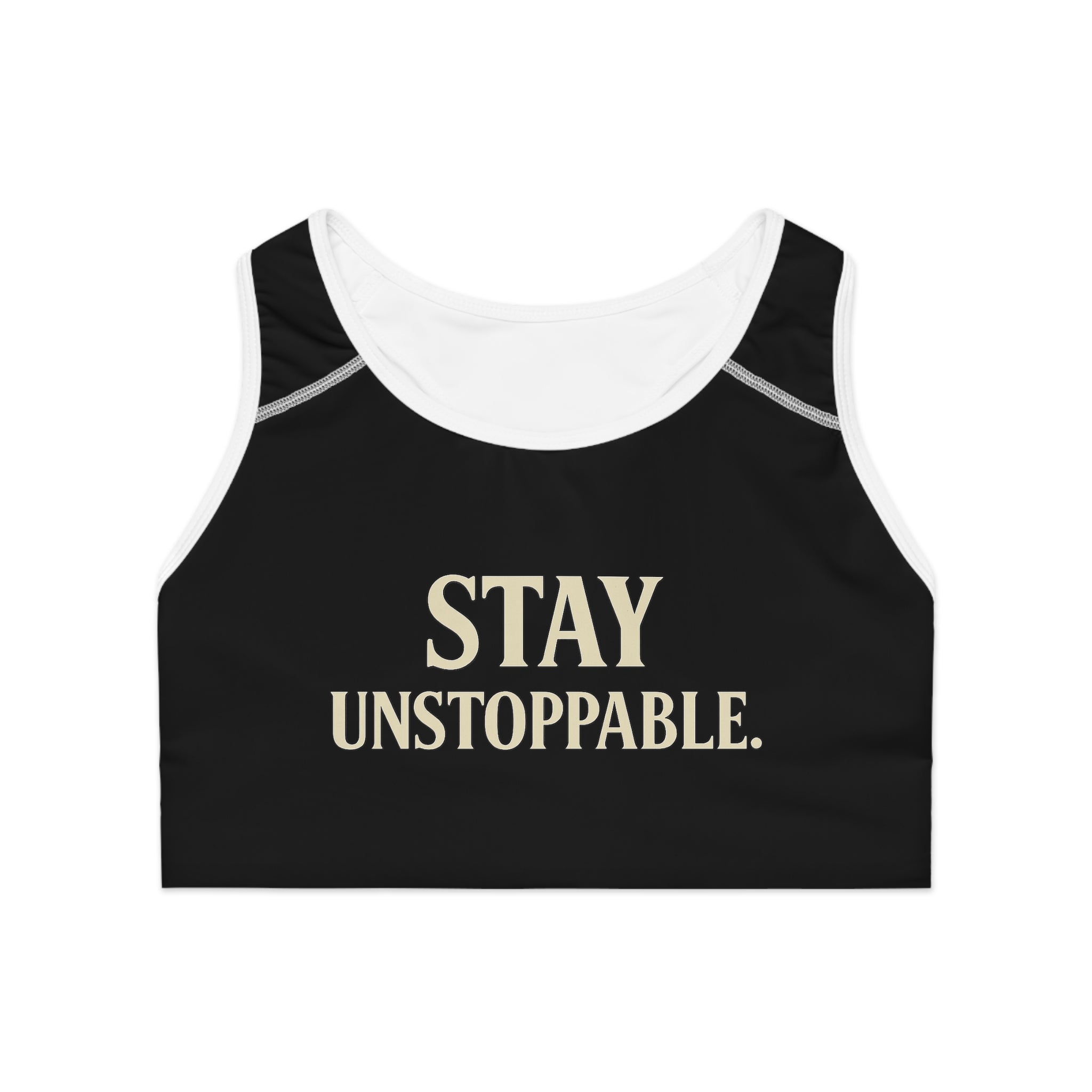 Crush limits, not comfort. The "Stay Unstoppable" Sports Bra is designed for women who train with grit and style. Whether you're grinding at the gym, stretching in yoga, or running life’s marathon, this bra is your daily dose of motivation. Boldly emblazoned with STAY UNSTOPPABLE, it's not just activewear—it's a mindset.
