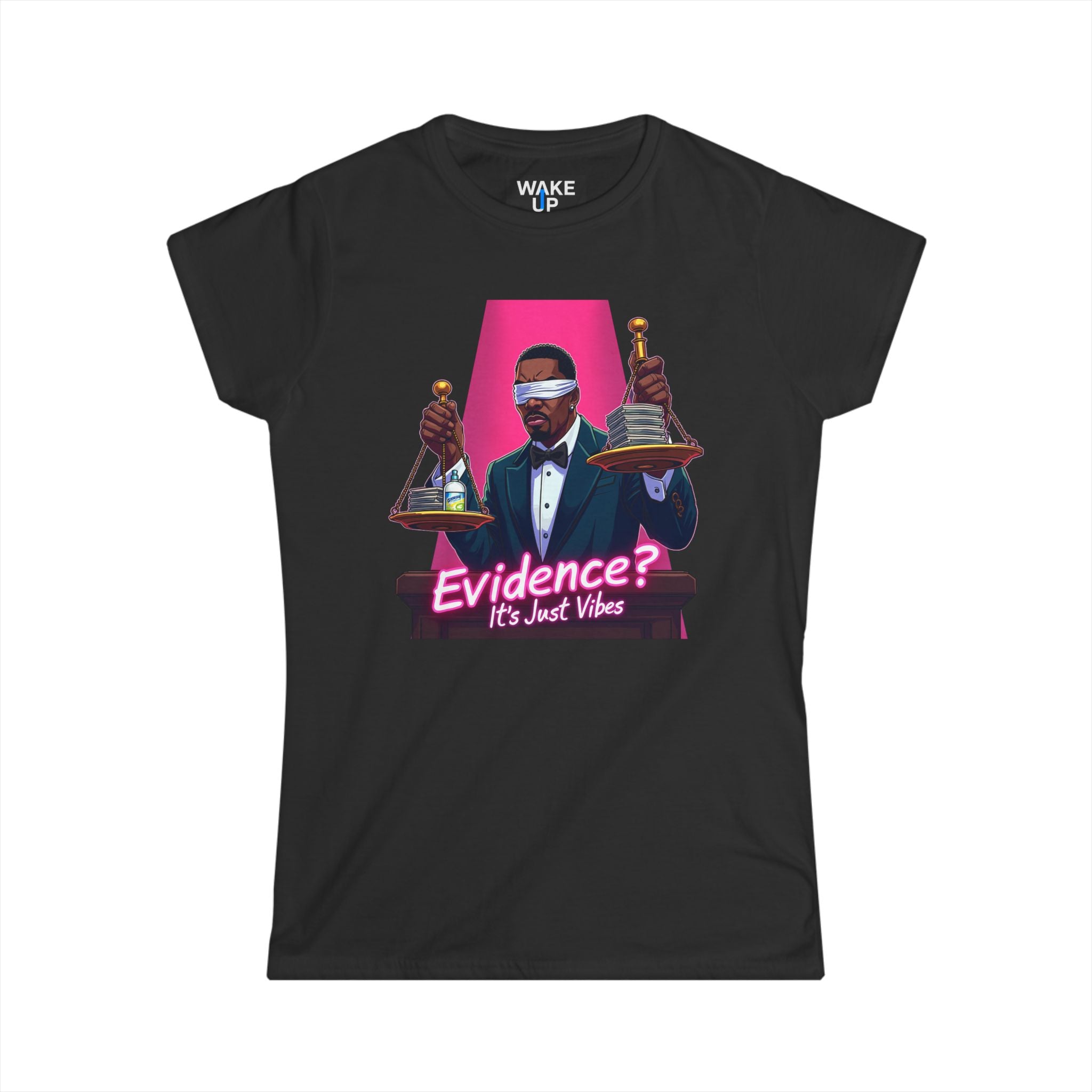 The “Evidence? It’s Just Vibes” women’s tee from the Rebel Souls Collection turns tabloid headlines into your personal style statement. Diddy as Lady Justice — blindfolded, balancing baby oil and NDAs — because sometimes it’s not about the facts, it’s about the vibes.