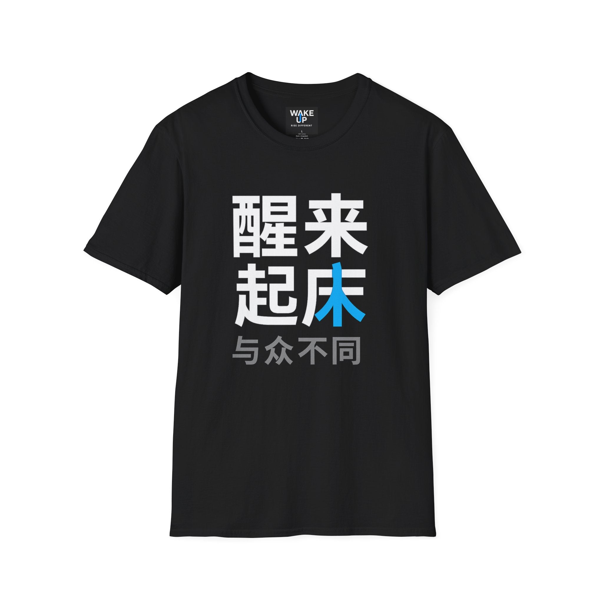 Présentation de醒来 起床 与众不同— l'ajout audacieux en chinois mandarin à la série internationale Wake Up Apparel.