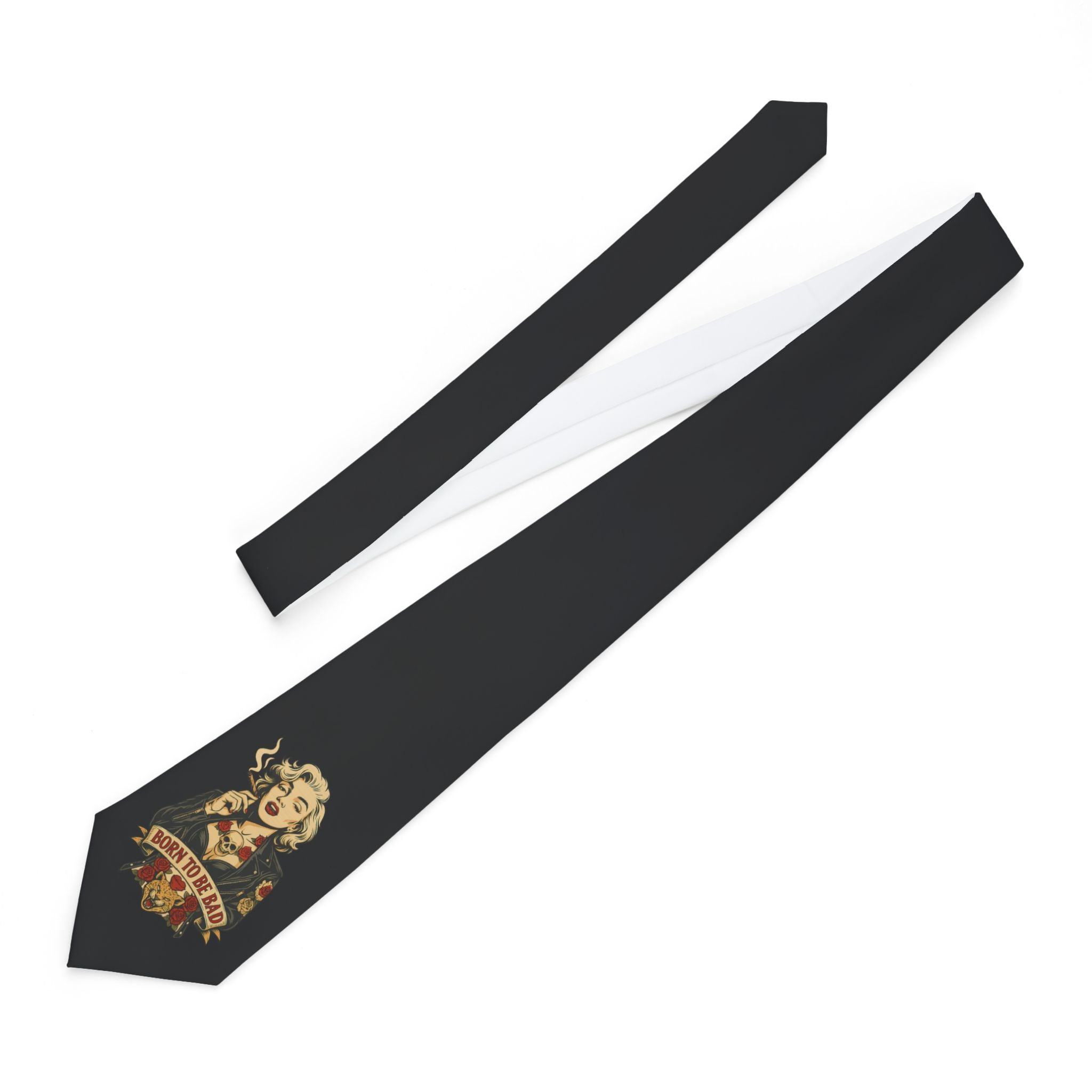 This ain't your dad’s necktie. The Born to Be Bad vintage-inspired necktie is for the rule-breakers, statement-makers, and dapper rebels who refuse to blend in. With its bold graphic print and luxurious satin finish, this tie brings a fearless edge to formalwear—perfect for weddings, business events, or wild nights where you want your style to speak louder than words.